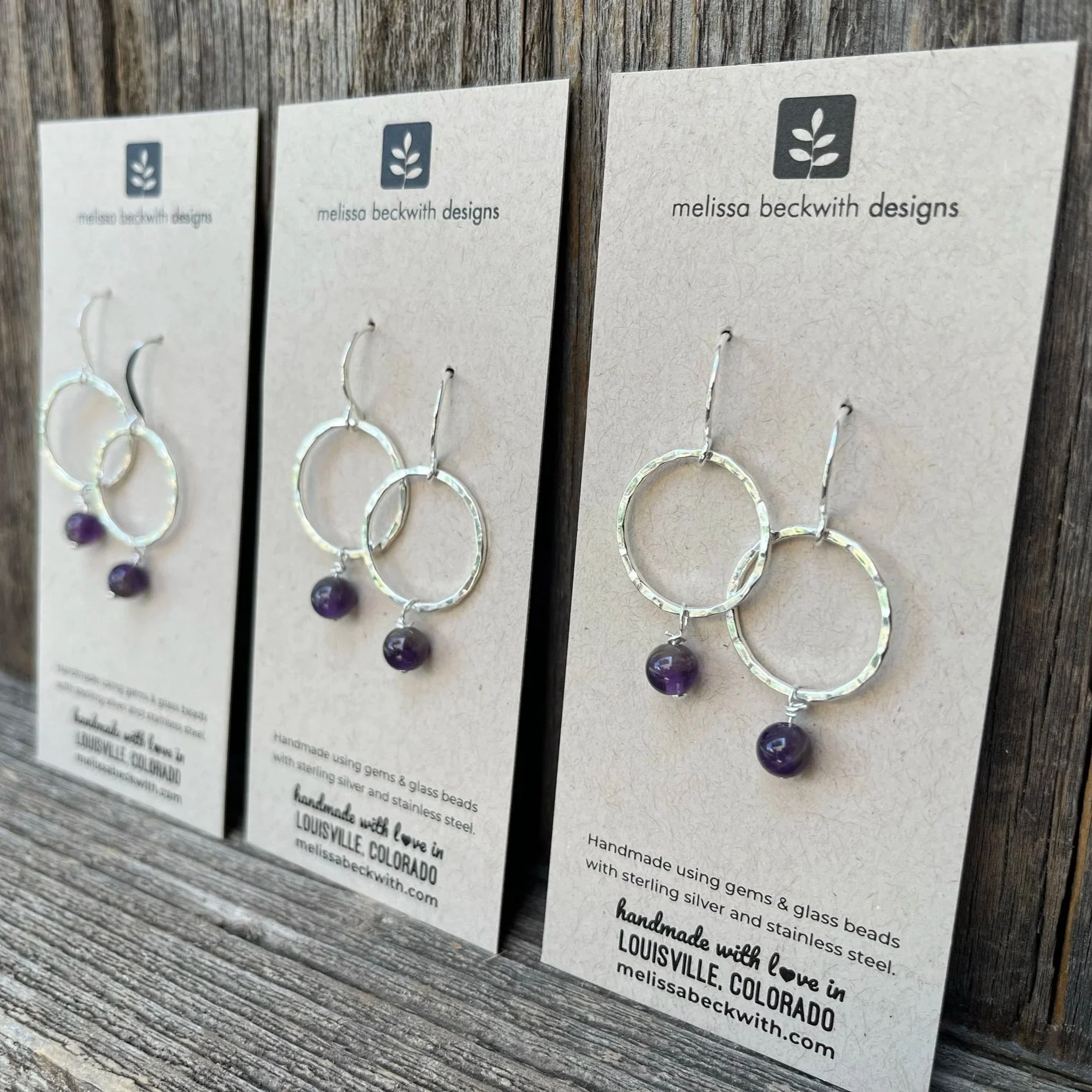 My love for color and texture naturally draws me towards jewelry. I search for glass beads and gems to make simple but elegant dangle earrings. With thick, wavy hair I have always wanted longer earrings to stand out and be visible from my mop of hair so I often design earrings that are 1-3 inches long with a combo of simple gems, glass beads and sterling circles.